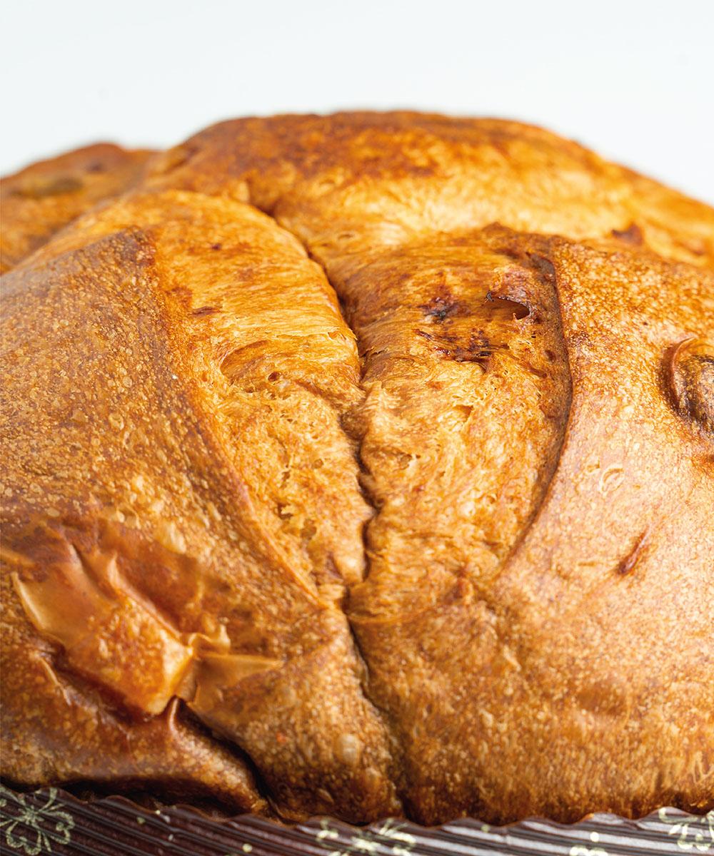 Ingredienti: farina di frumento “00” e”0”, acqua, burro, zucchero, uvetta, canditi: arancia e cedro (zucchero e glucosio), tuorlo d’uovo pastorizzato categoria A, lievito naturale, miele, burro di cacao, pasta d’arancia (zucchero e glucosio), latte scremato in polvere, sale. Aromi: vaniglia.